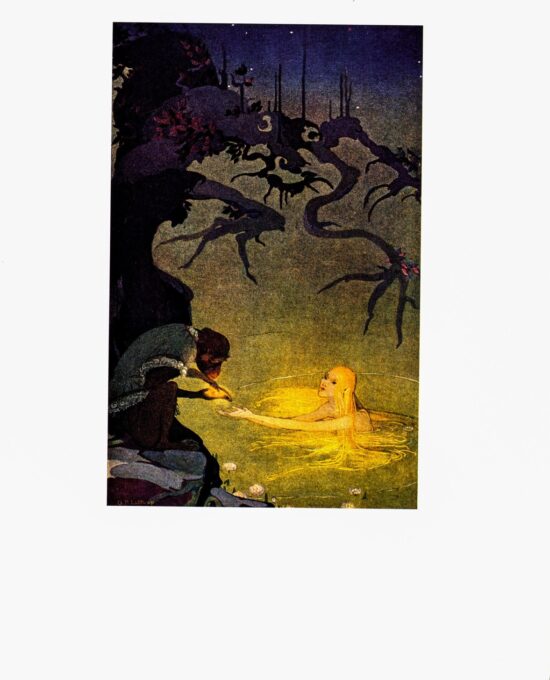 No tears, writing, folds or significant creases. "He circled for a while high in the air above them lighting all the lake; the trees by the shore shown like copper and like blood with leaping shadows of dense black at their feet." This book page has been salvaged from a 35 year old art book that was orphaned or damaged in the binding. It may have some slight signs of age, but this adds to the unique charm. No hand-written marks on either side. There will some unrelated content on the back. Measures (approx.): Full page - 8 1/8 x 11 1/8 inches tall Illustration - 7 1/8 x 5 1/2 inches tall Please note: This is an authentic old vintage book page print, not a reprint or reproduction. The image(s) may not be centered on the page. The last photo for each listing is the layout of the entire page including any margins. SHIPPING: Your print(s) ship FREE, promptly in a sturdy kraft shipping tube, by USPS Ground Advantage