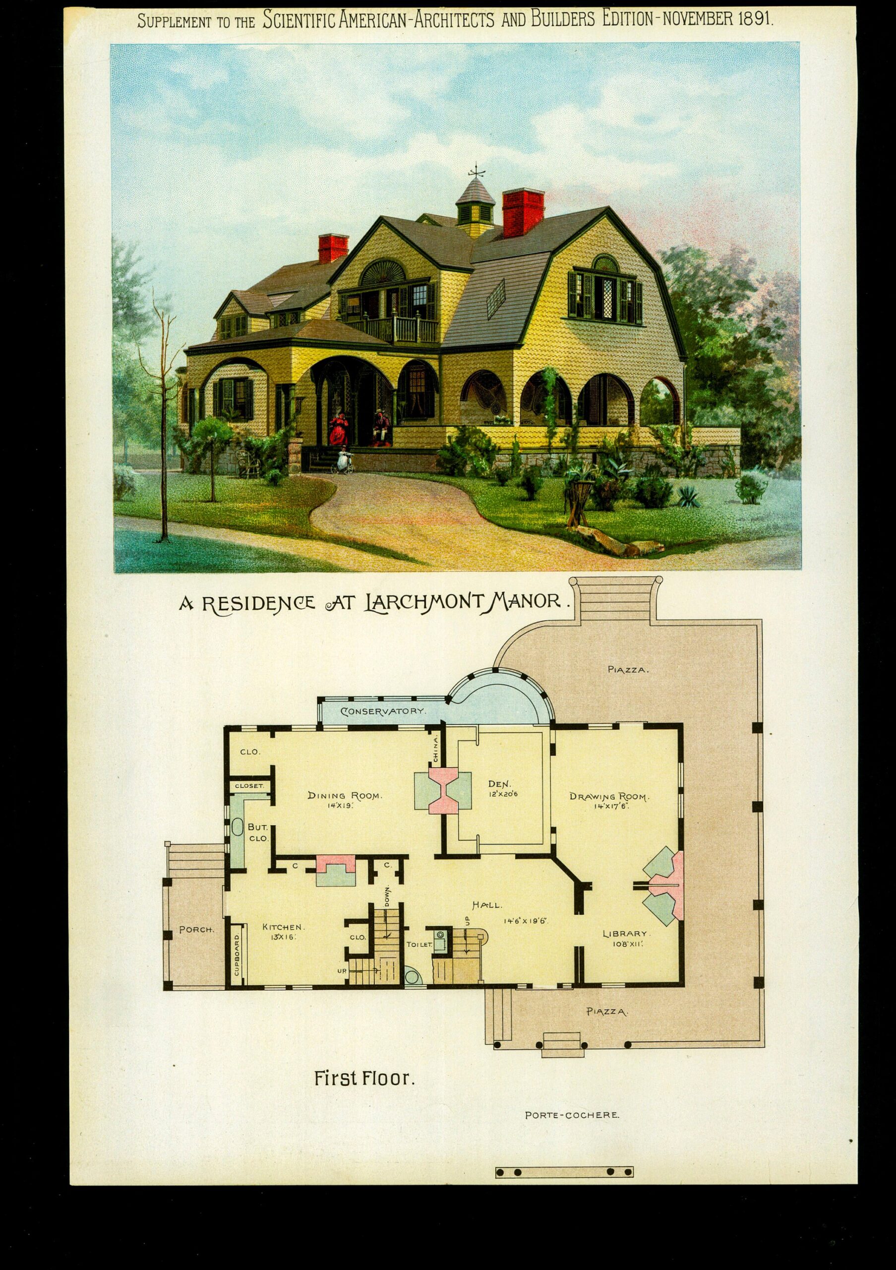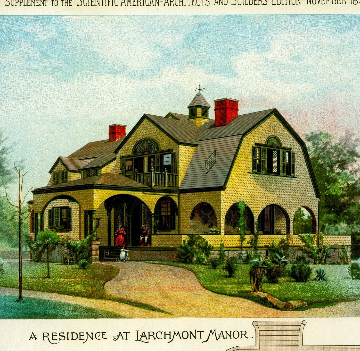 1891 Scientific American Color Plate: Larchmont Manor Victorian Home