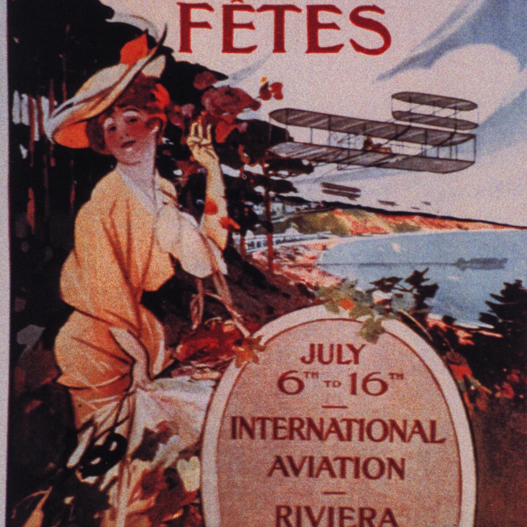 1910 Aviation Art Print: International Riviera Carnival, Vintage Flight Illustration
