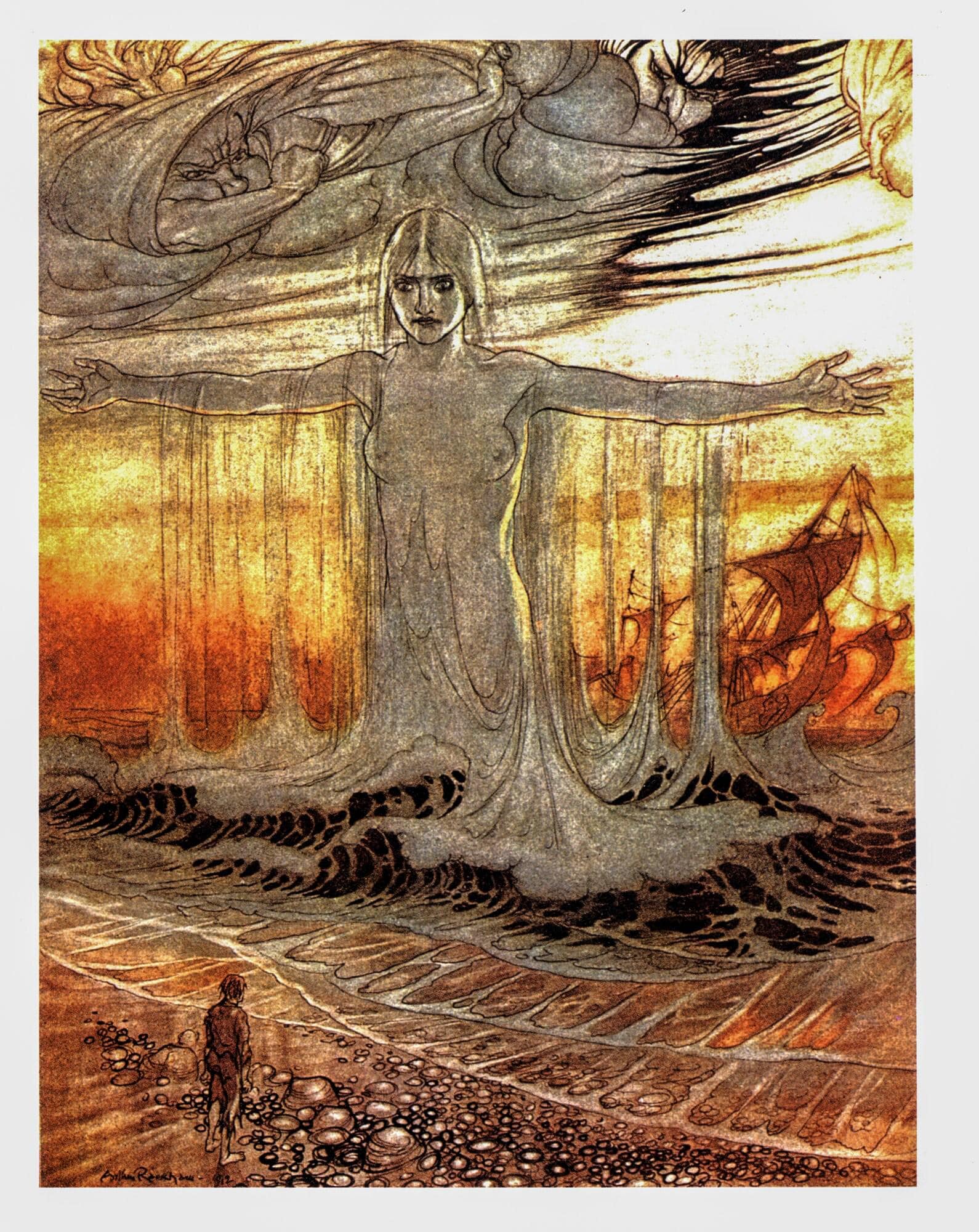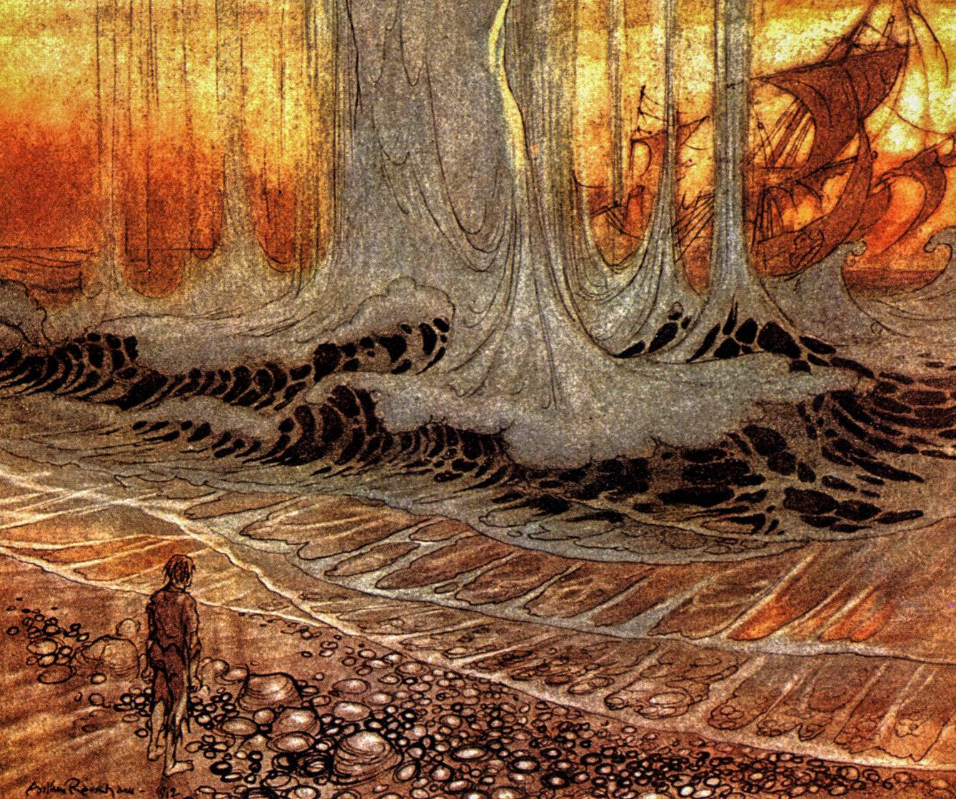 Arthur Rackham “The Shipwrecked Man” Vintage Art Print – Aesop’s Fables