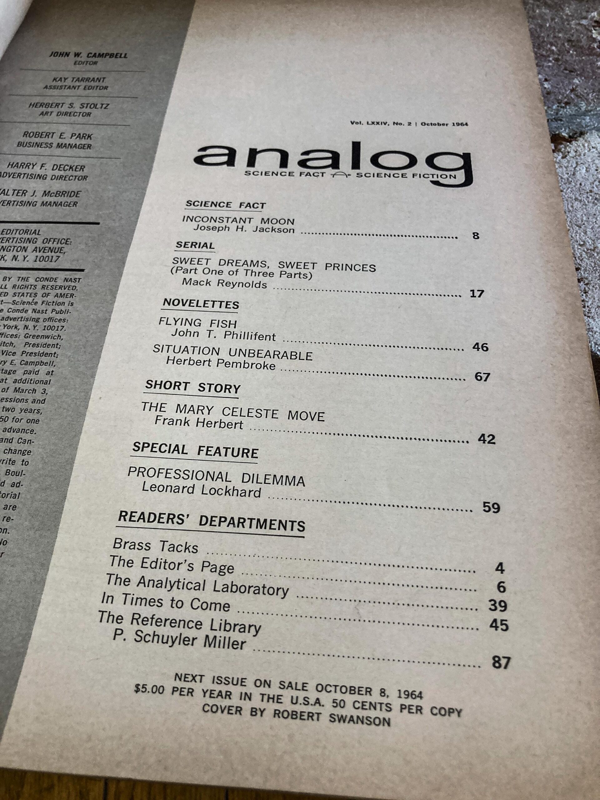 Analog Science Fact Fiction Magazine October 1964 Frank Herbert Short Story