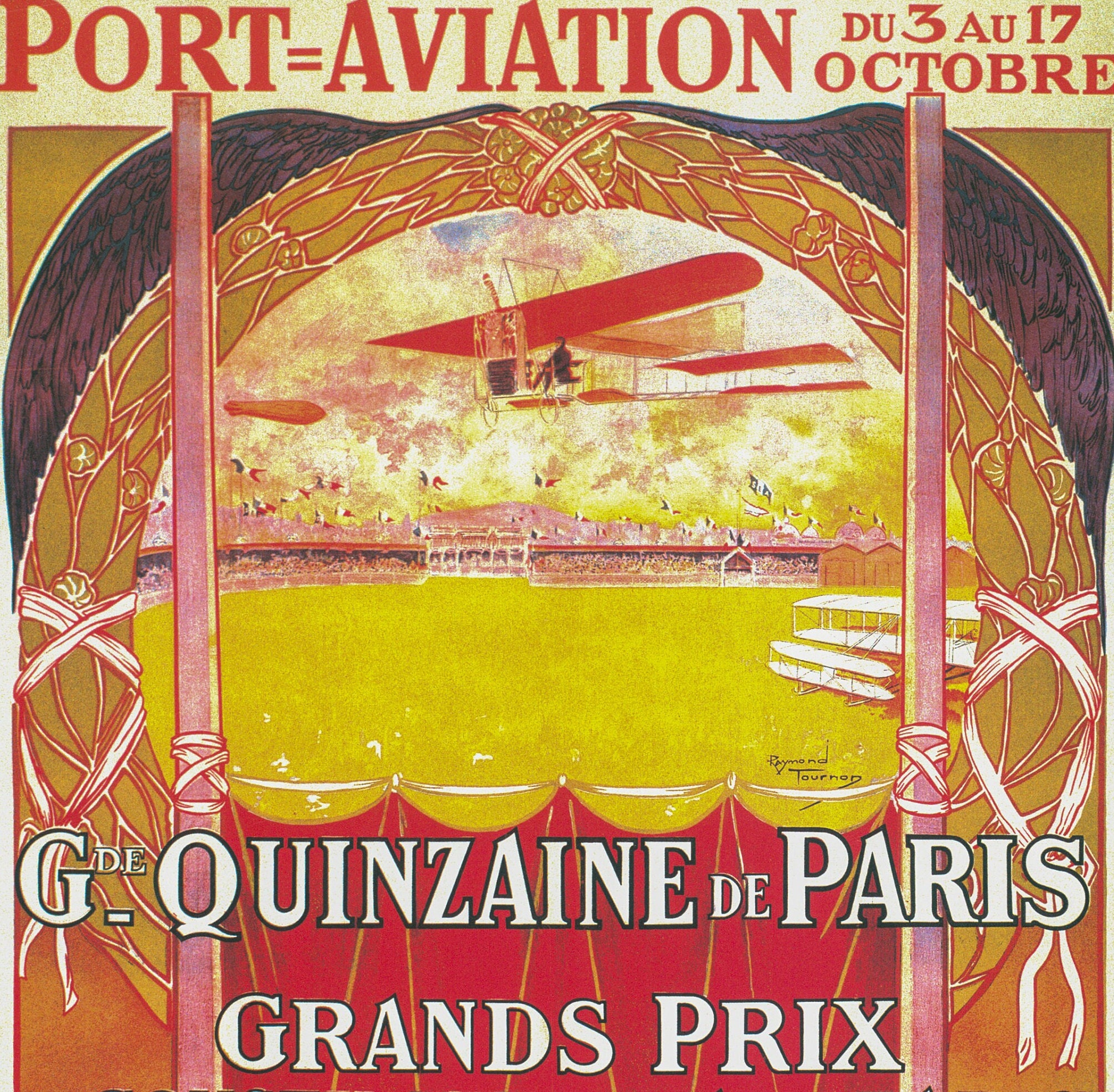 1910 Aviation Art Print: International Riviera Carnival, Vintage Flight Illustration