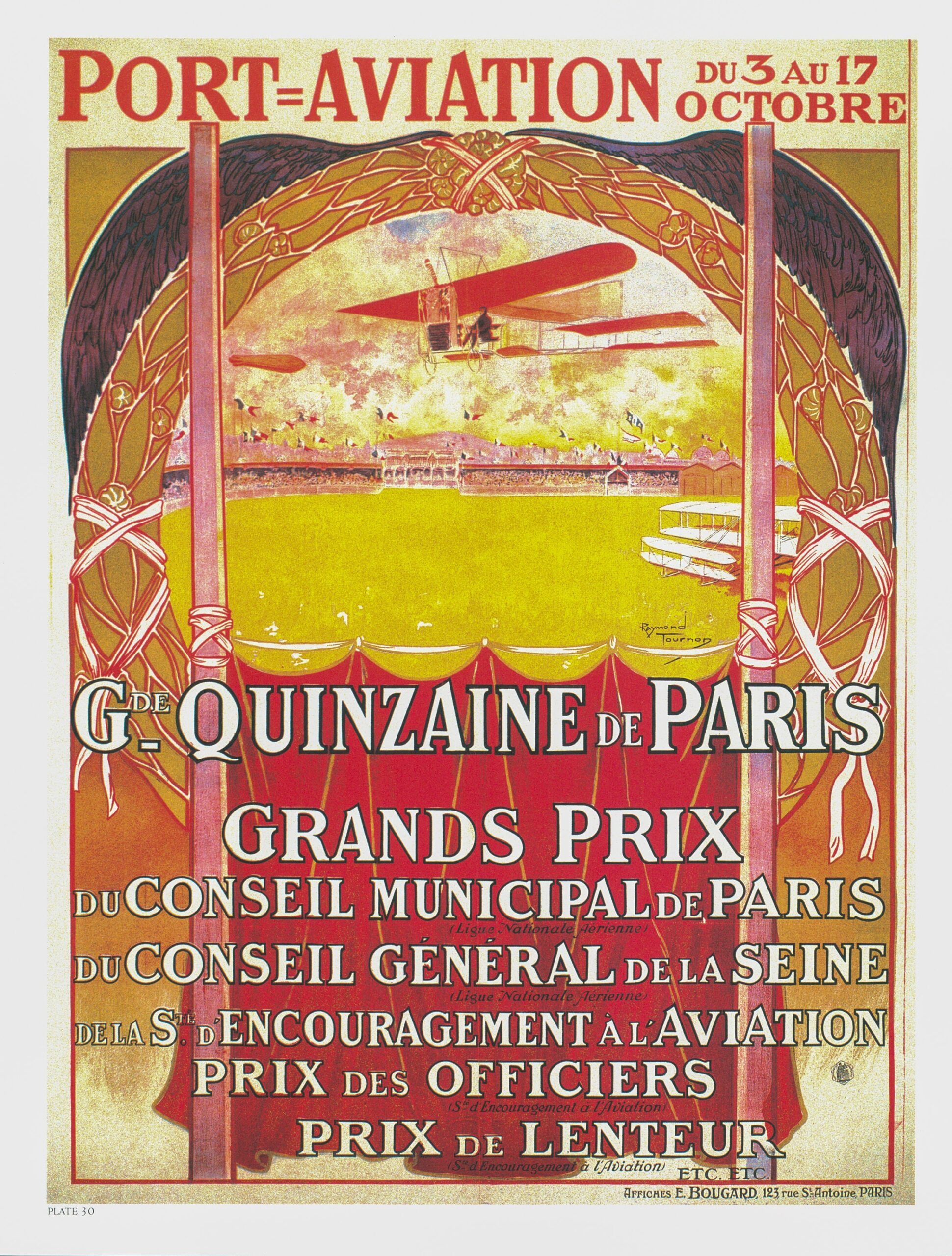 Antique Flight Illustration “Port-Aviation Gran Quinzaine Paris” 1910 Recovered vintage art book page