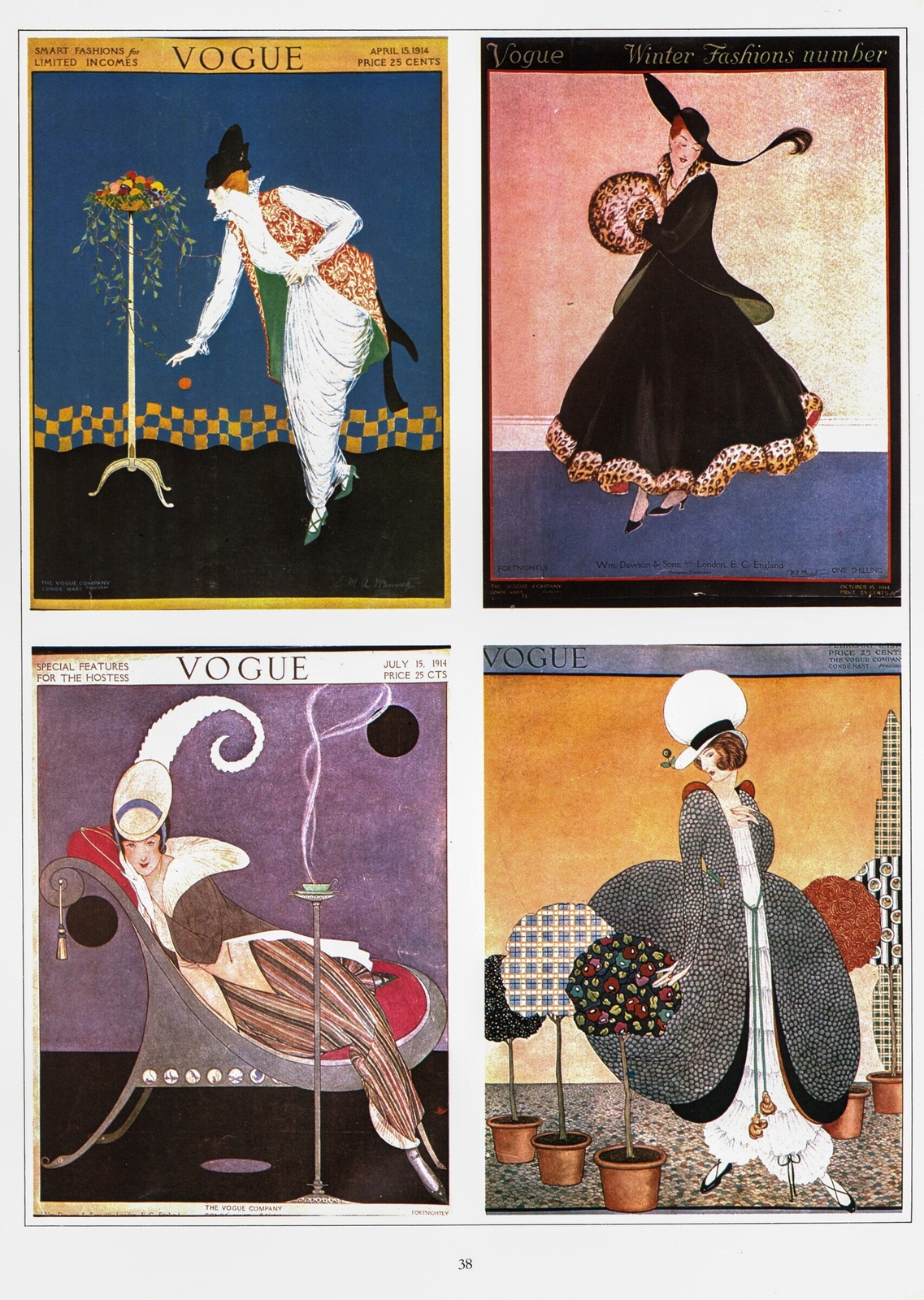 Antique Vogue Magazine cover art [1912-1914] Changing style trends and