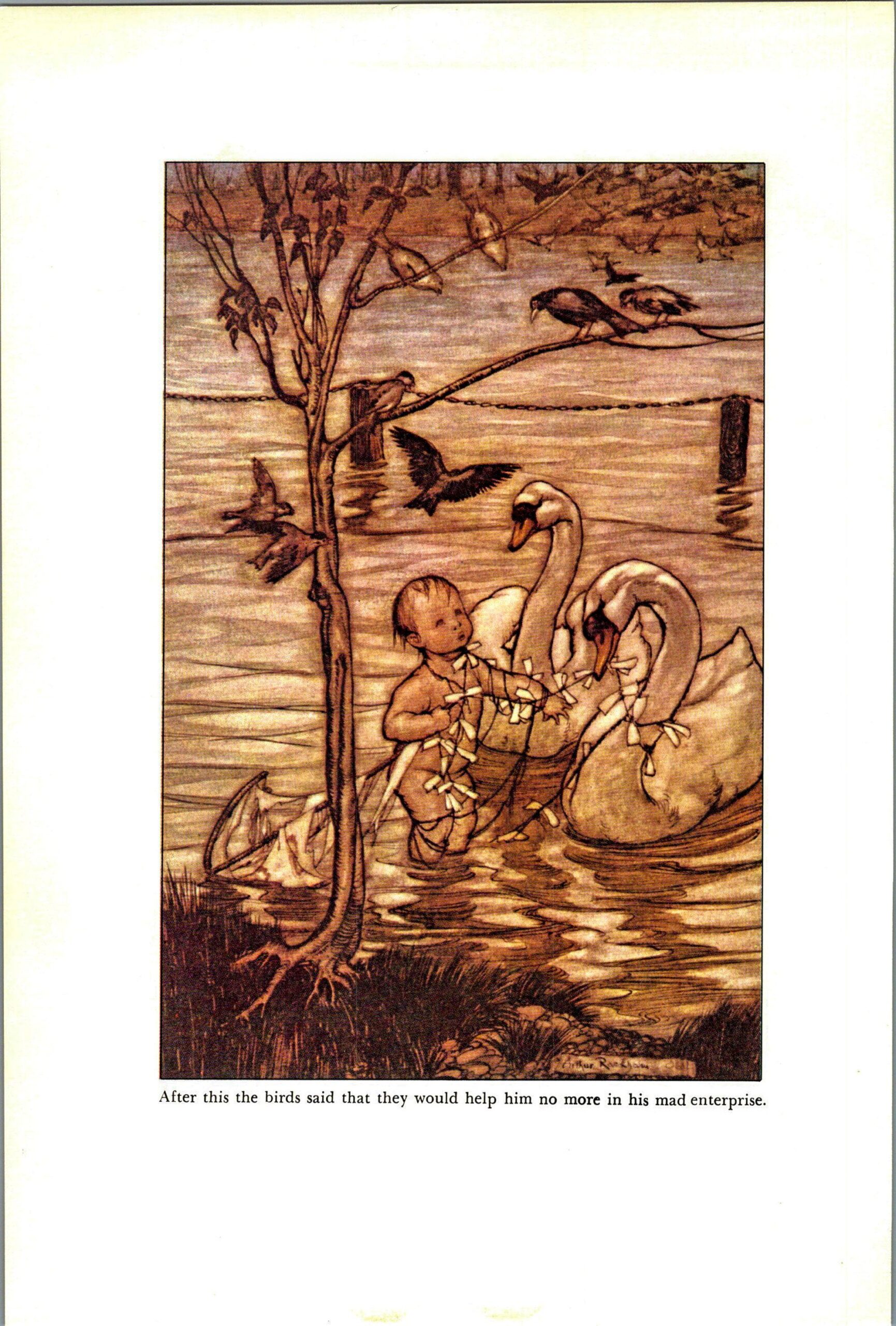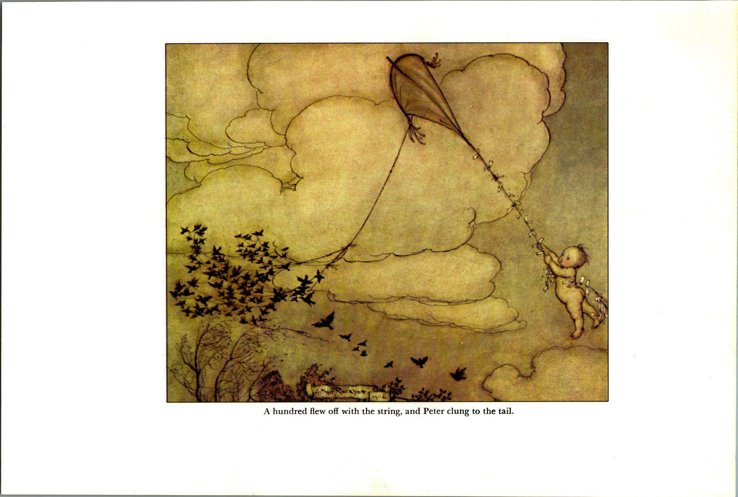 Arthur Rackham Vintage 2-sided art book page “Peter clung to the tail” & “…the birds said the would help no more…” Kensington Gardens