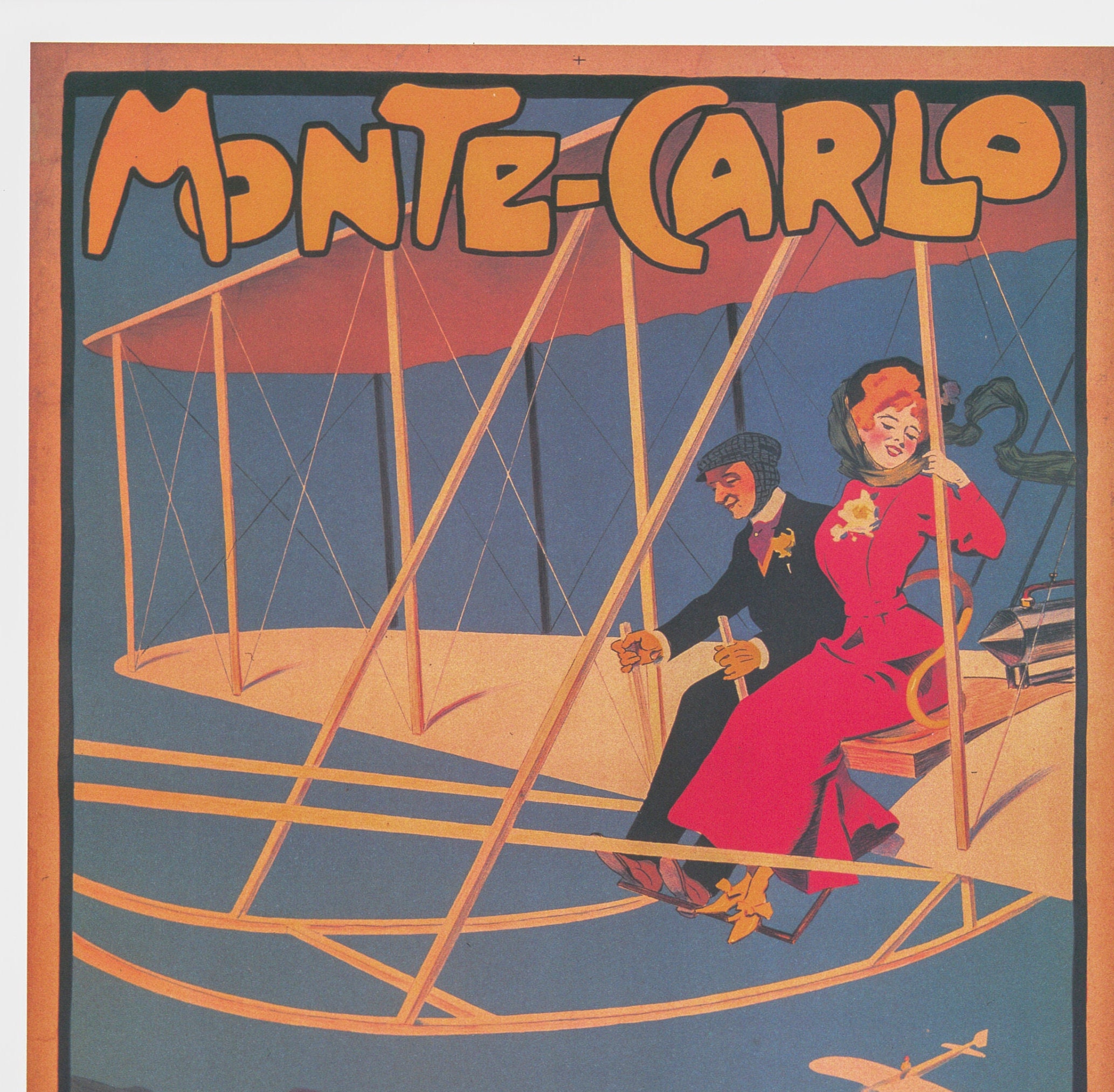 Antique Aviation Art “Monte Carlo” 1909 Vintage flight art