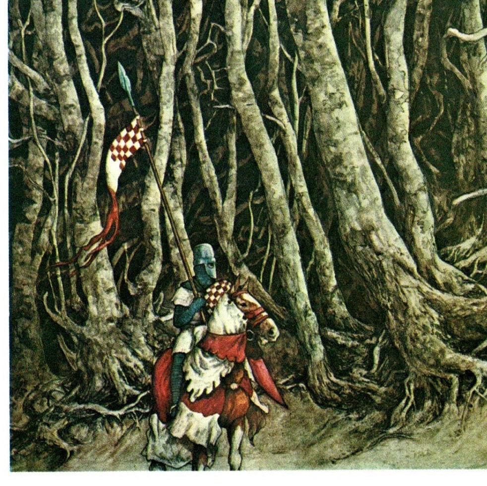 Brian Froud Art Print: Elfin Maid, Knight in Woodland, Vintage Book Page