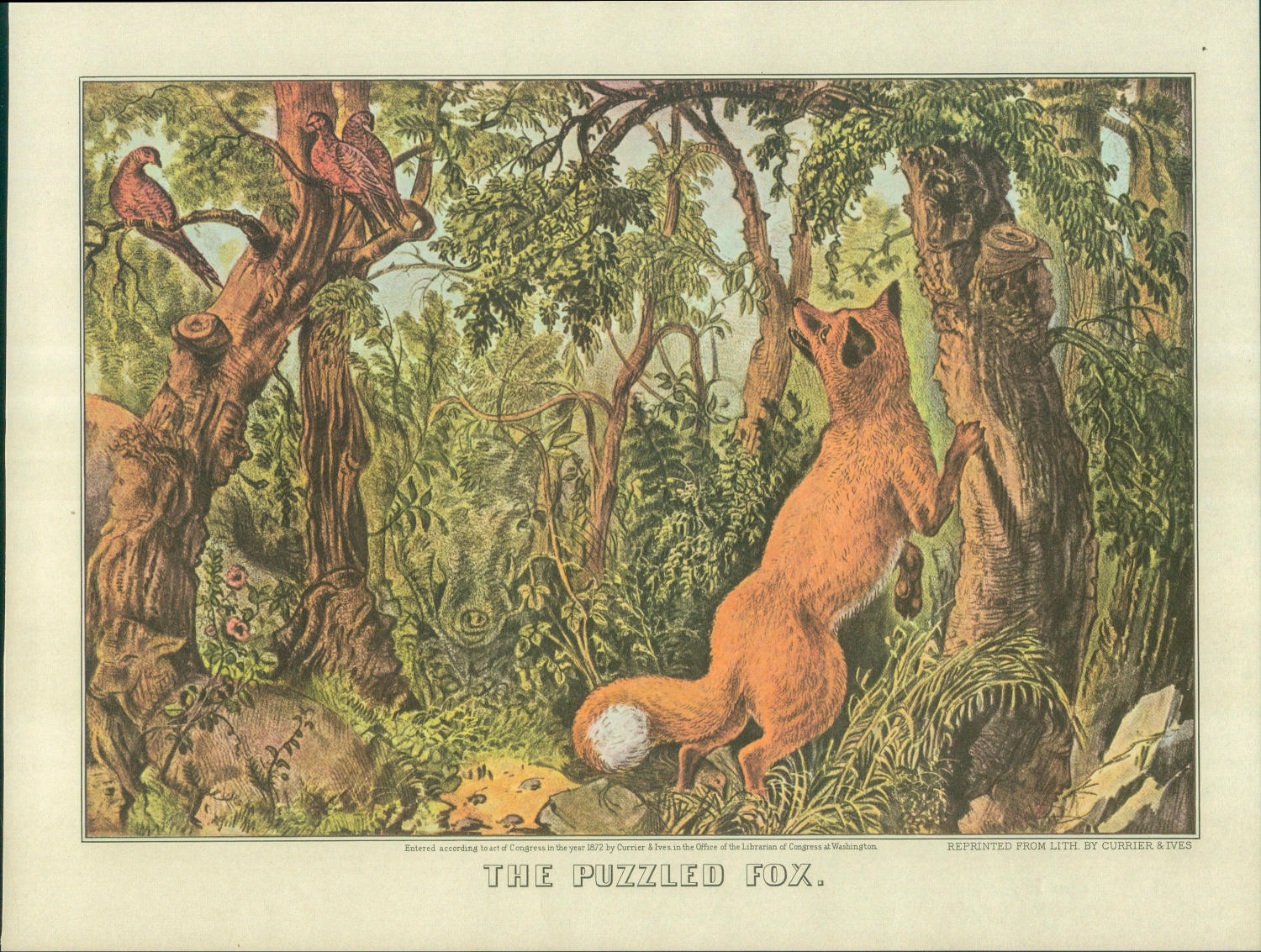 Currier & Ives: “The Puzzled Fox” Vintage 1950s Art Print (15×11.5″)