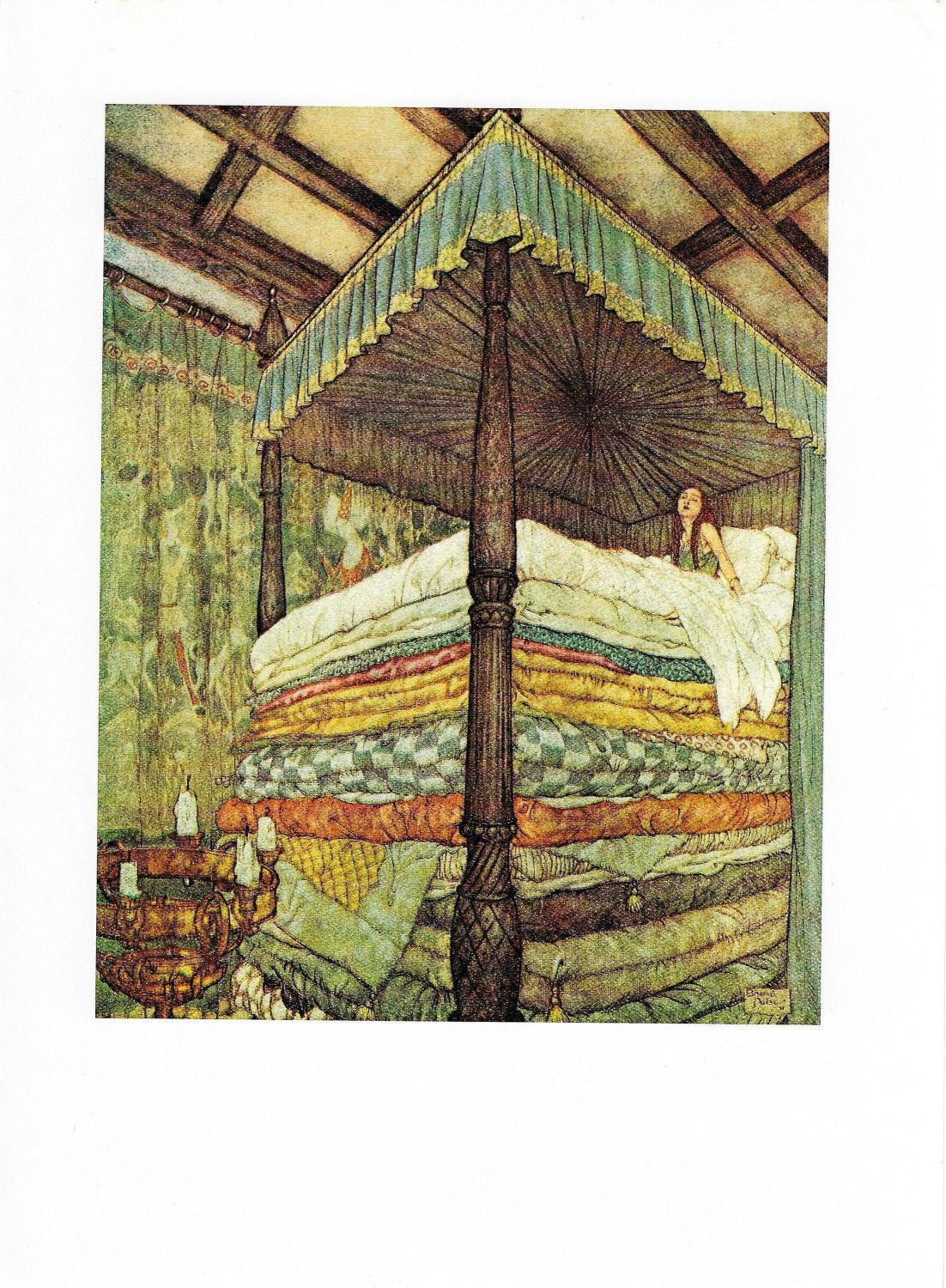 Edmund Dulac “Princess and Pea” Vintage Art Book Page [1911]
