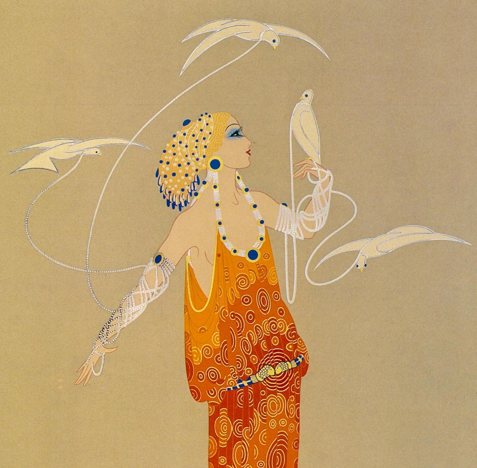 A classic Erte Art Deco print. Authentic vintage book page, not a reproduction, in excellent vintage condition. No tears or writing or folds. Heavy, satin finish paper.