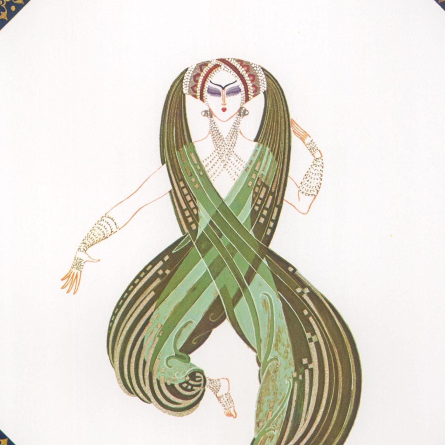 A classic Erte Art Deco print. Authentic vintage book page, not a reproduction, in excellent vintage condition. No tears or writing or folds. Two-sided, one image per side. Glossy paper.