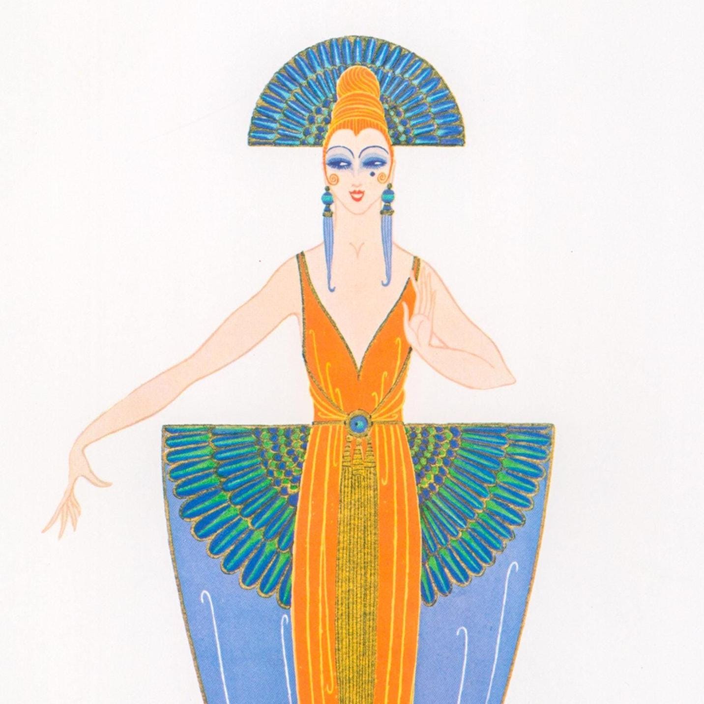 Measures: The publisher of this title published in two sizes, you will receive one of the following depending upon inventory availability: (If you order multiple prints from this title, we will ship all prints ordered in the same size.) Full page size - 9 x 12 inches or 8 x 11 inches tall Illustration(s) - approx. 7.5 x 10.6 inches or 6.5 x 9.6 inches respectively. Please note: This is an authentic old vintage art book page, not a reprint or reproduction. It may have some signs of age, but this adds to the unique charm. The image(s) may not be centered on the page and there may be text below the illustrations detailing what the image is. Erté is perhaps most famous for his elegant fashion designs which capture the art deco period in which he worked. One of his earliest successes was designing apparel for the French dancer Gaby Deslys who died in 1920. His delicate figures and sophisticated, glamorous designs are instantly recognizable, and his ideas and art still influence fashion into the 21st century. His costumes, programme designs, and sets were featured in the Ziegfeld Follies of 1923, many productions of the Folies Bergère, and George White's Scandals. On Broadway, the celebrated French chanteuse Irène Bordoni wore Erté's designs. SHIPPING: Your prints will be shipped in a sturdy kraft mailing tube, by USPS Ground Advantage within 1-3 business days.