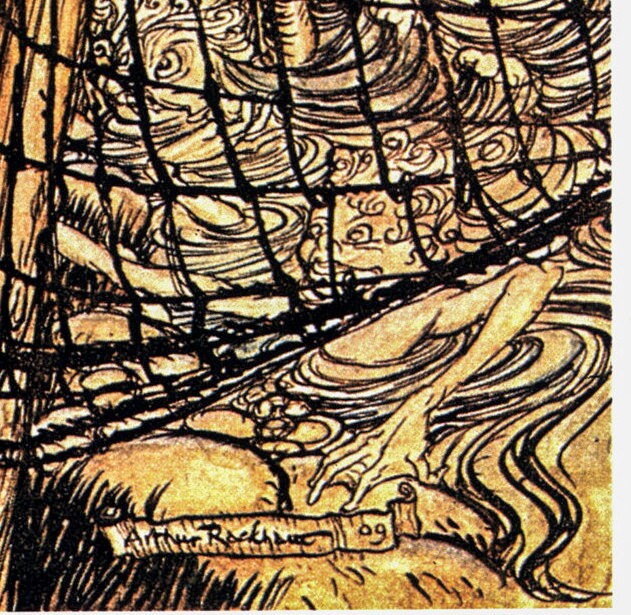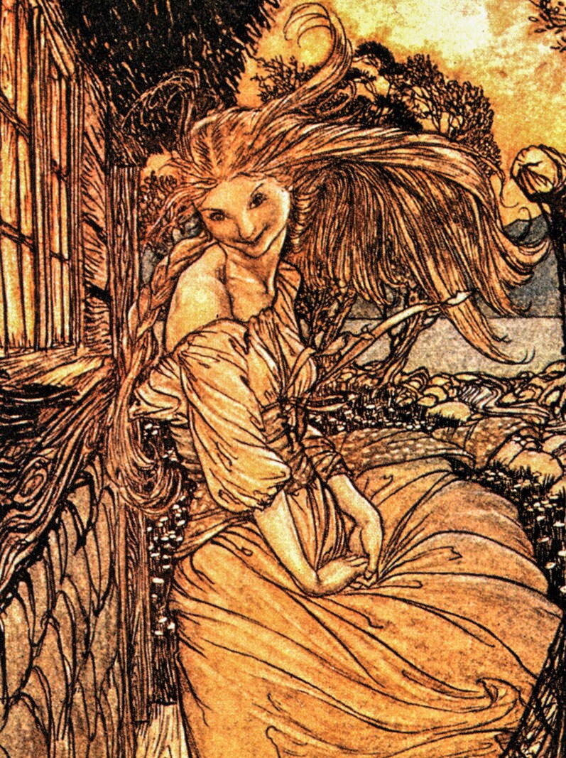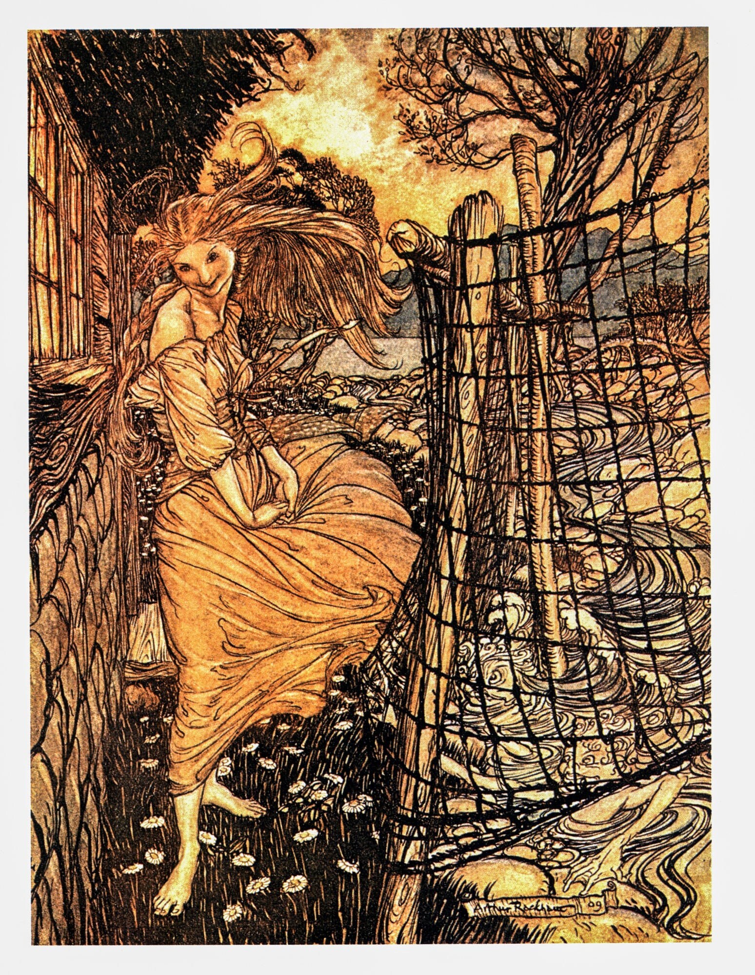 Fantasy Tales Undine Arthur Rackham 1909 art “Outside the Window” Color vintage book plate Ready to frame FREE SHIPPING
