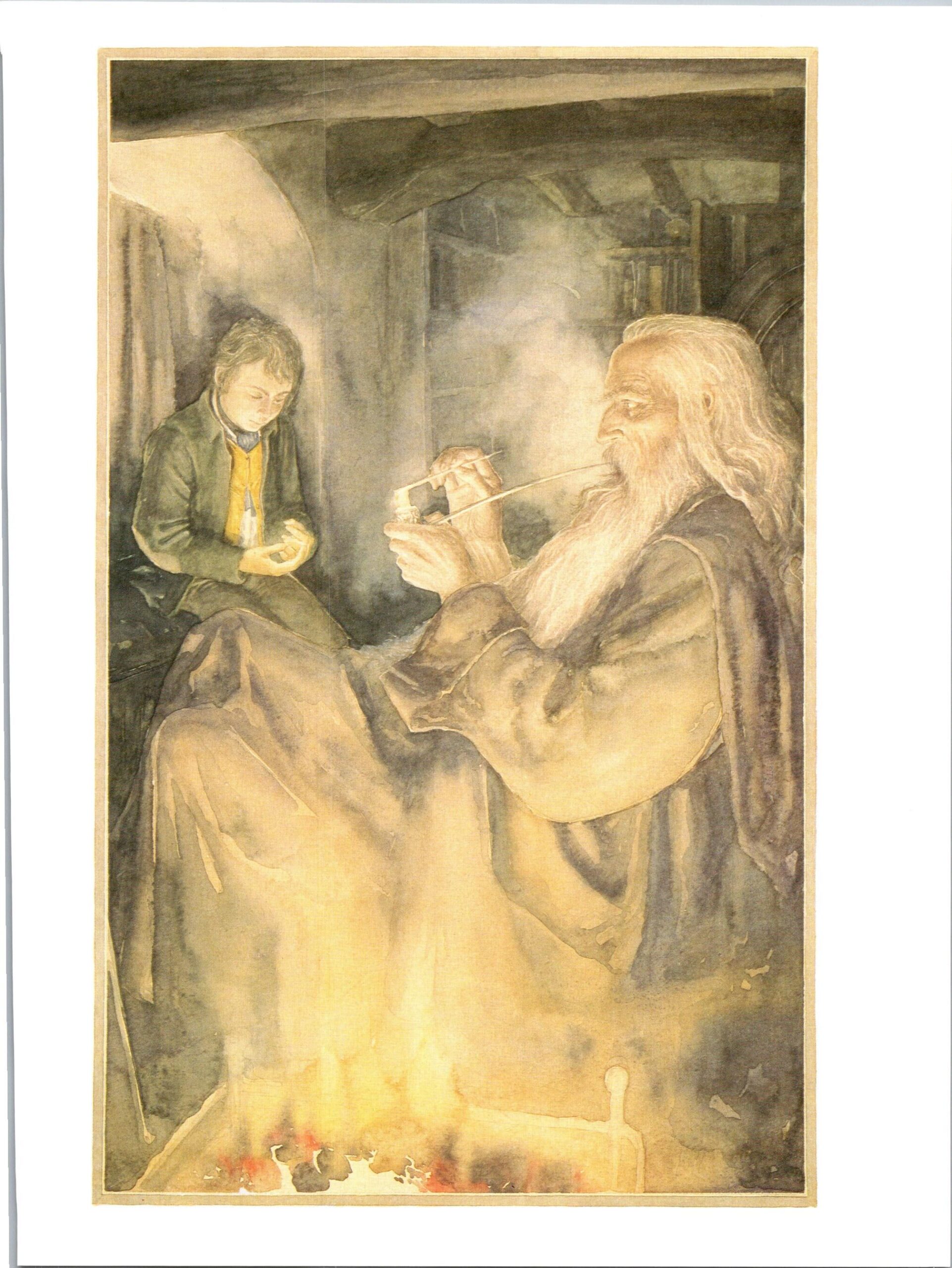 Frodo and Gandalf by Alan Lee from The Fellowship of the Ring Vintage art-book page