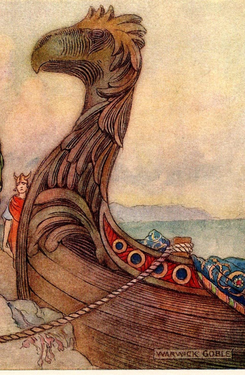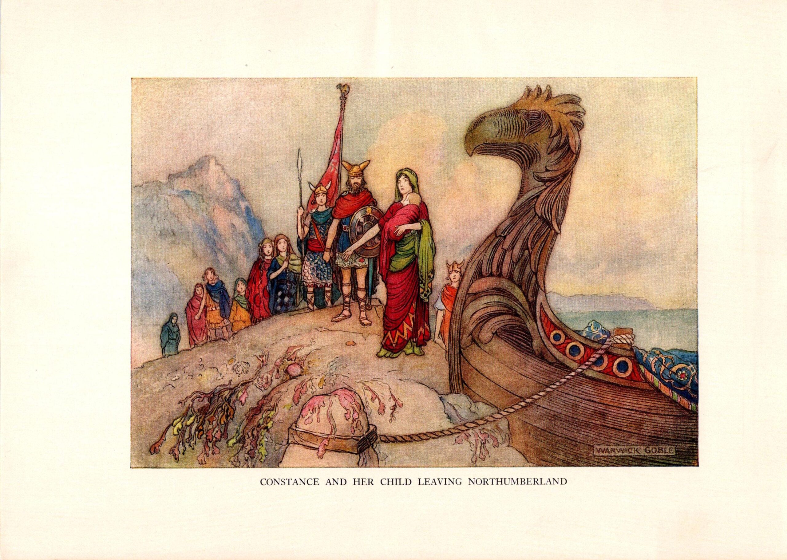 From Chaucer’s Works “Constance Leaving Northumberland” Vintage illustration by Warwick Goble