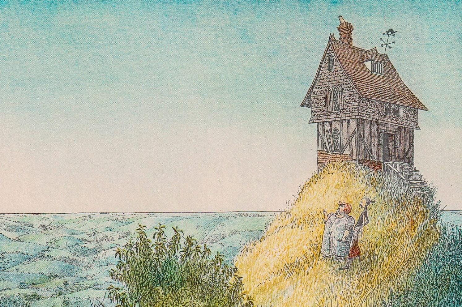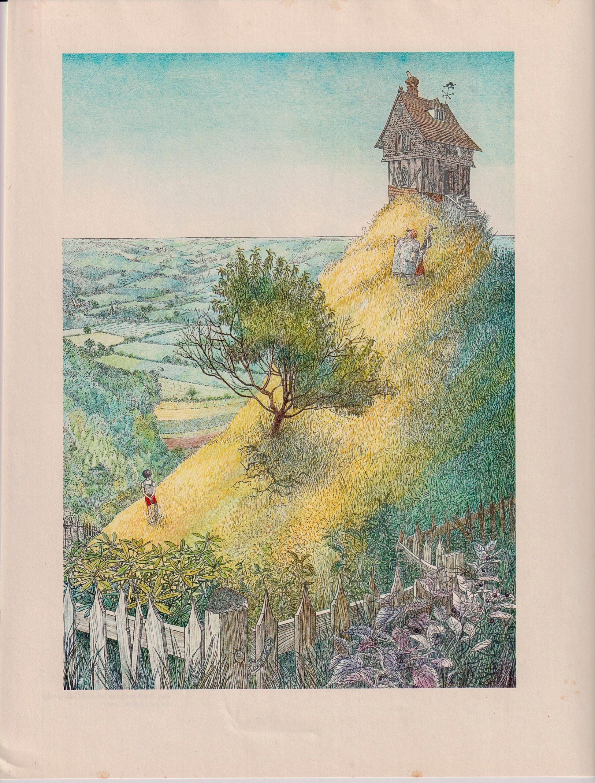 James and the Giant Peach “The hill was so high…” Nancy Ekholm Burkert Vintage art book page Children’s book art