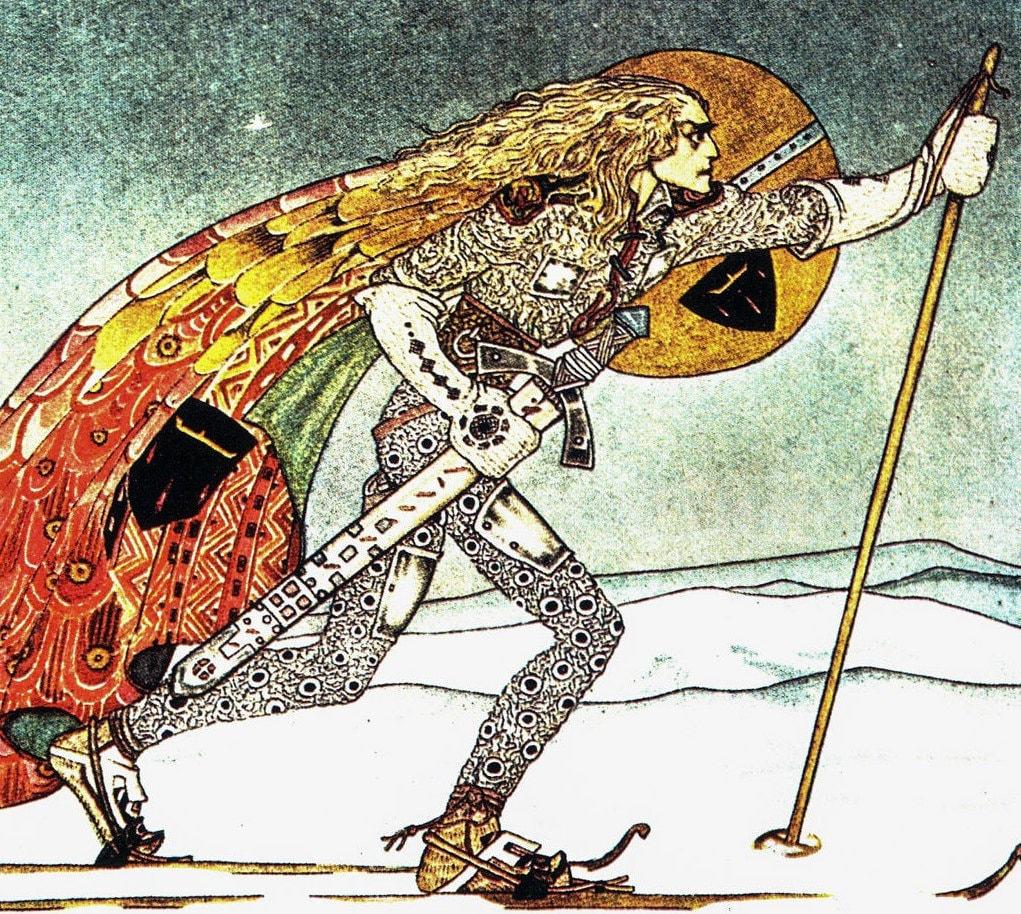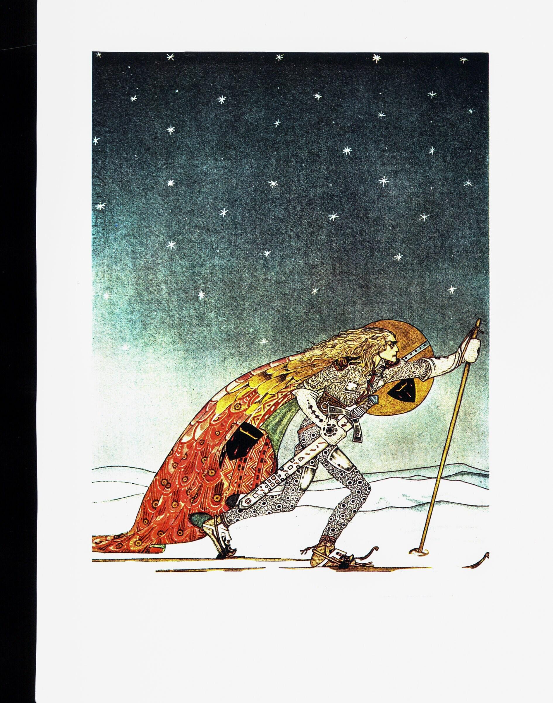 About Mr. Nielsen (as read on Wikipedia):Kay Nielsen was a Danish illustrator who was popular in the early 20th century, the “golden age of illustration” which lasted from when Daniel Vierge and other pioneers developed printing technology to the point that drawings and paintings could be reproduced with reasonable facility. Nielsen is also known for his collaborations with Disney for whom he contributed many story sketches and illustrations, not least for Fantasia.In 1914, Nielsen provided 25 colour plates and more than 21 monotone images for the children’s collection East of the Sun and West of the Moon. The colour images for both In Powder and Crinoline and East of the Sun and West of the Moon were reproduced by a 4-colour process, in contrast to many of the illustrations prepared by his contemporaries that characteristically utilized a traditional 3-colour process. Also in that year, Nielsen produced at least three illustrations depicting scenes from the life of Joan of Arc. When published later in the 1920s, these images were associated with relevant text from The Monk of Fife.