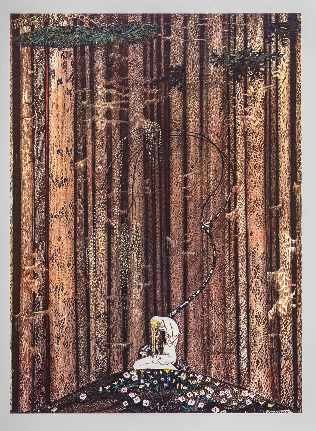 Kay Nielsen Art Nouveau Print: Gloomy Forest Illustration, 1913 Vintage Book Page