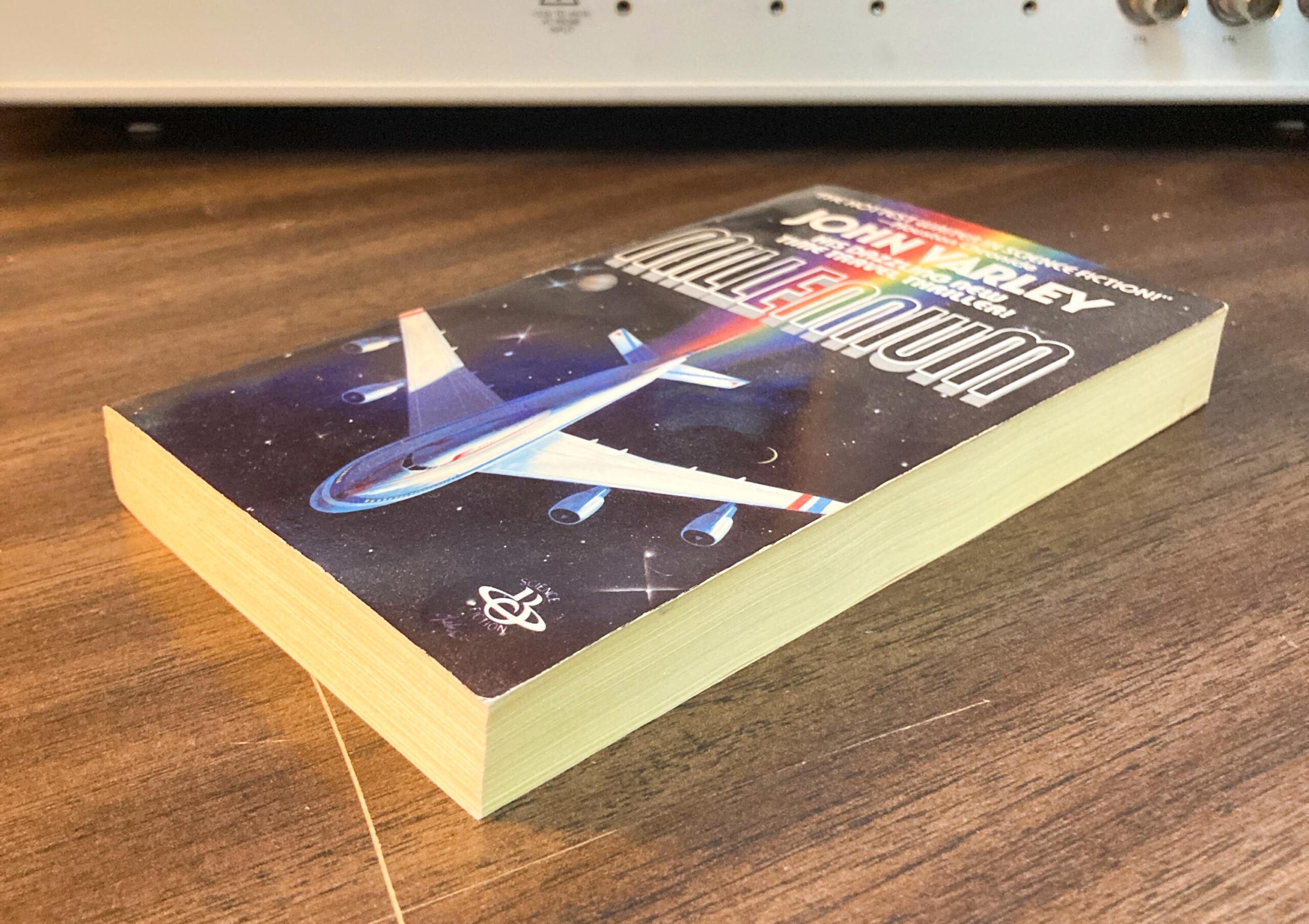 This is a very clean and bright vintage paperback (very good – very good plus) edition of John Varley’s much-loved time-travel novel “Millenium”.