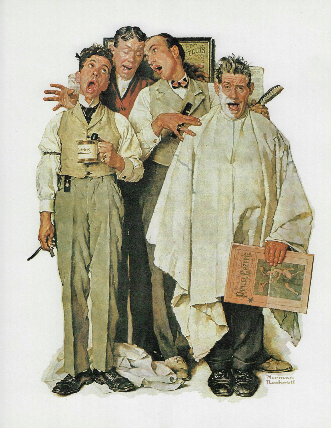 Norman Rockwell Vintage art book page “Barbershop Quartet” September 1936