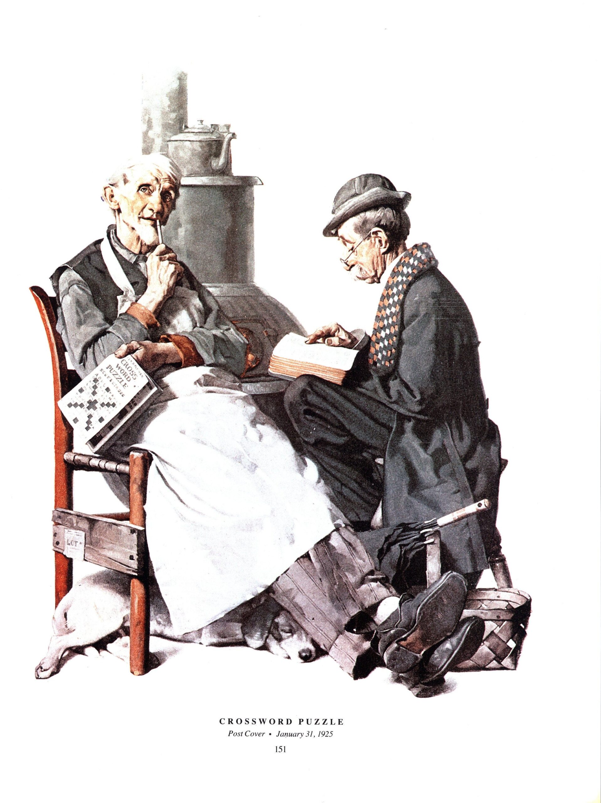 Norman Rockwell “Crossword Puzzle” & “Self Portrait” vintage print