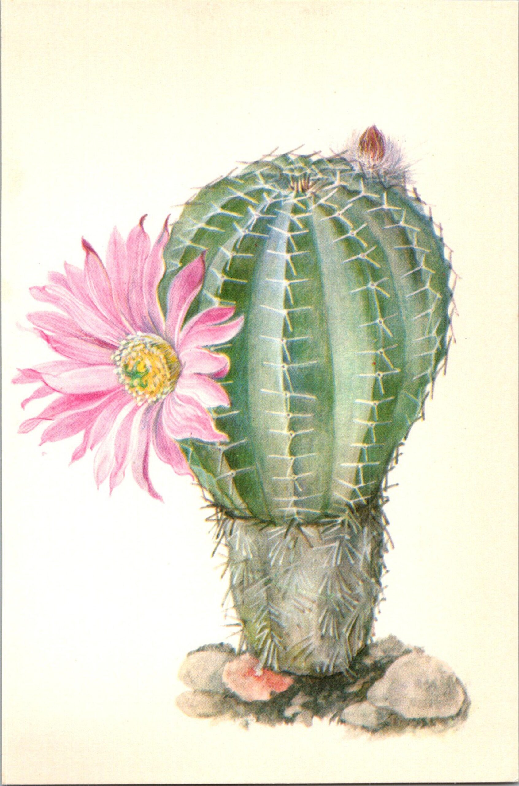 Pink Hedgehog Echinocereus pulchellus, San Luis Mexico 4 1/2 x6 1/2″ vintage book page