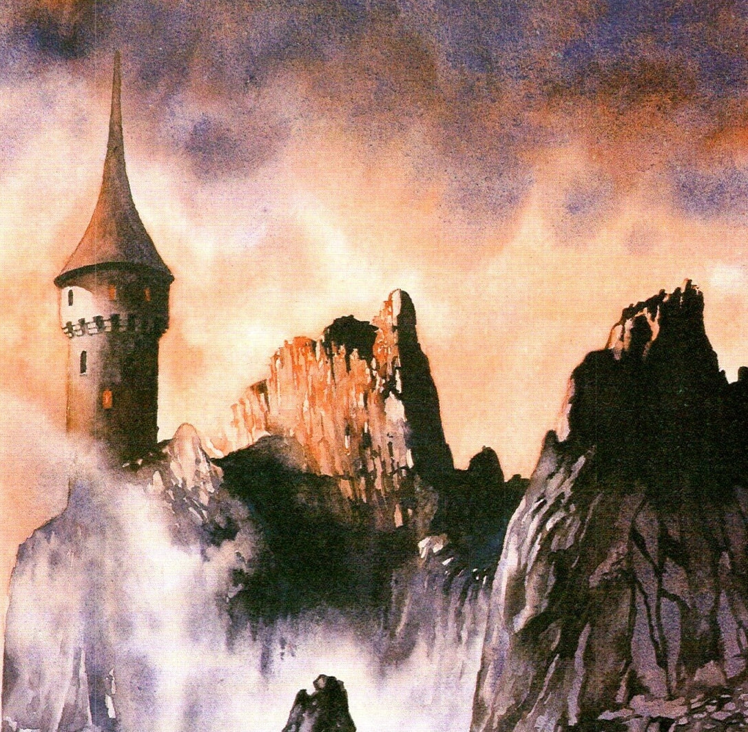 “Sam looked up towards the orc-tower, and suddenly from its narrow windows lights stared out like small red eyes..”