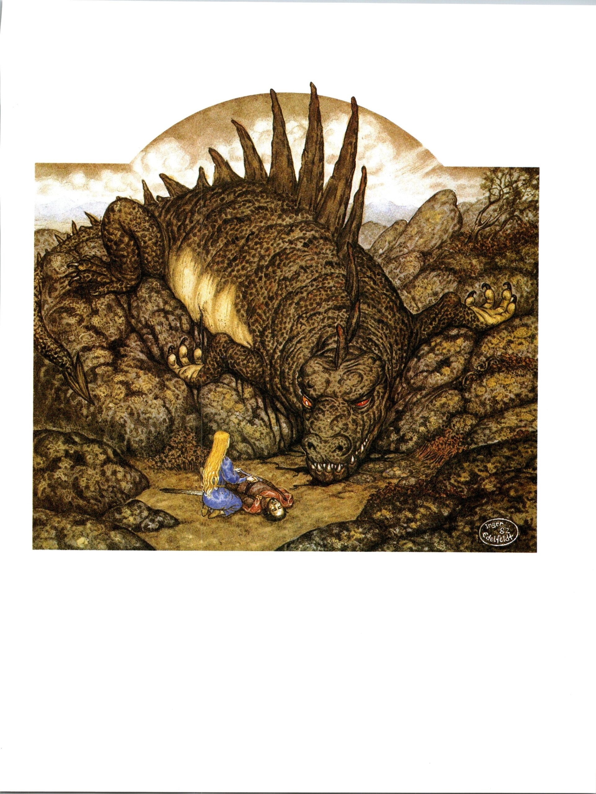 The Death of Glaurung by Inger Edelfeldt from The Silmarillion Vintage art-book page