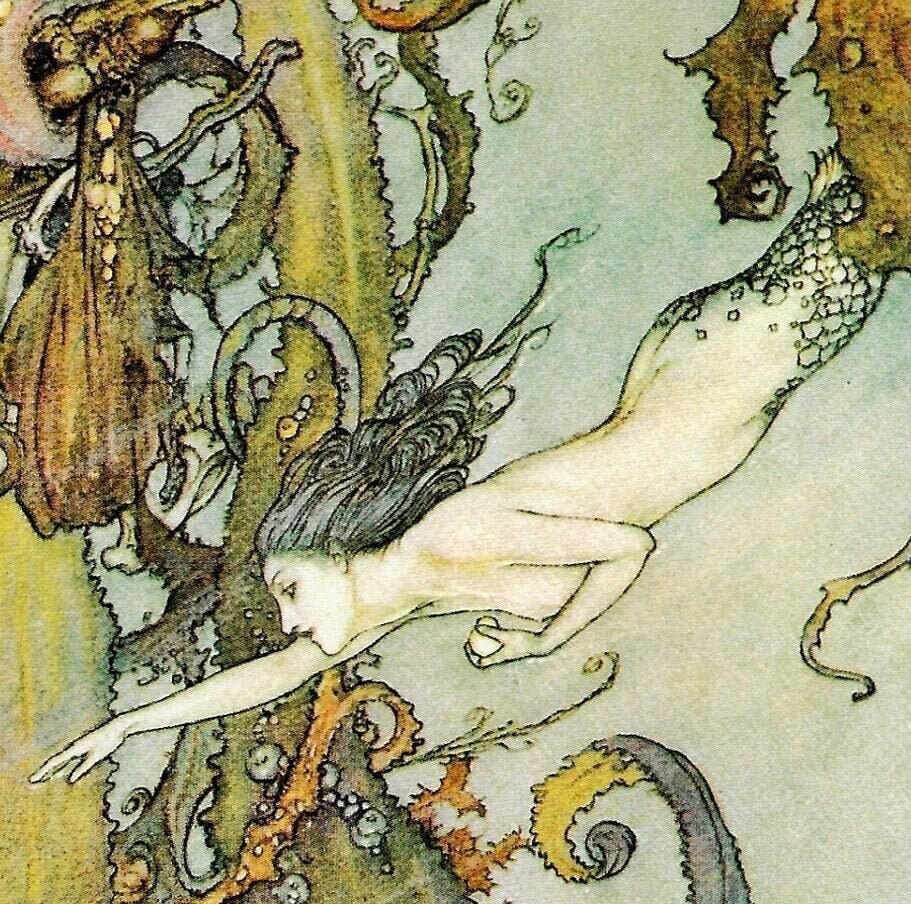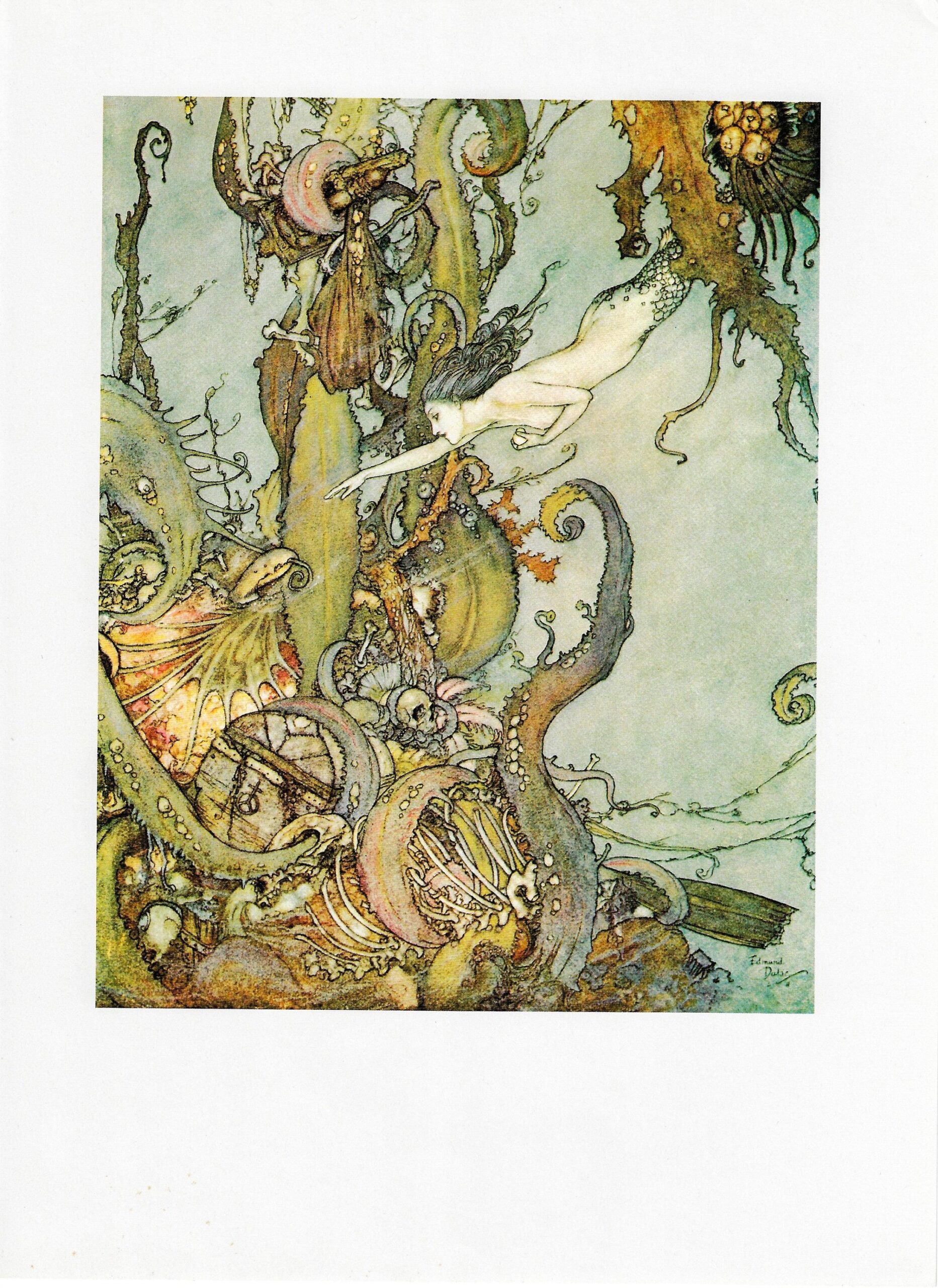 The Little Mermaid Hans Andersen stories Edmund Dulac [1911] “which sparkled in her hand like a shining star…” Vintage art book page