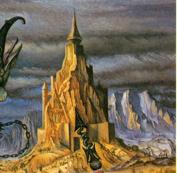 Vintage fantasy art book page Brian Froud “The Ogre built his manse high and lonely…” From The Sword of Thrac unpublished 1976