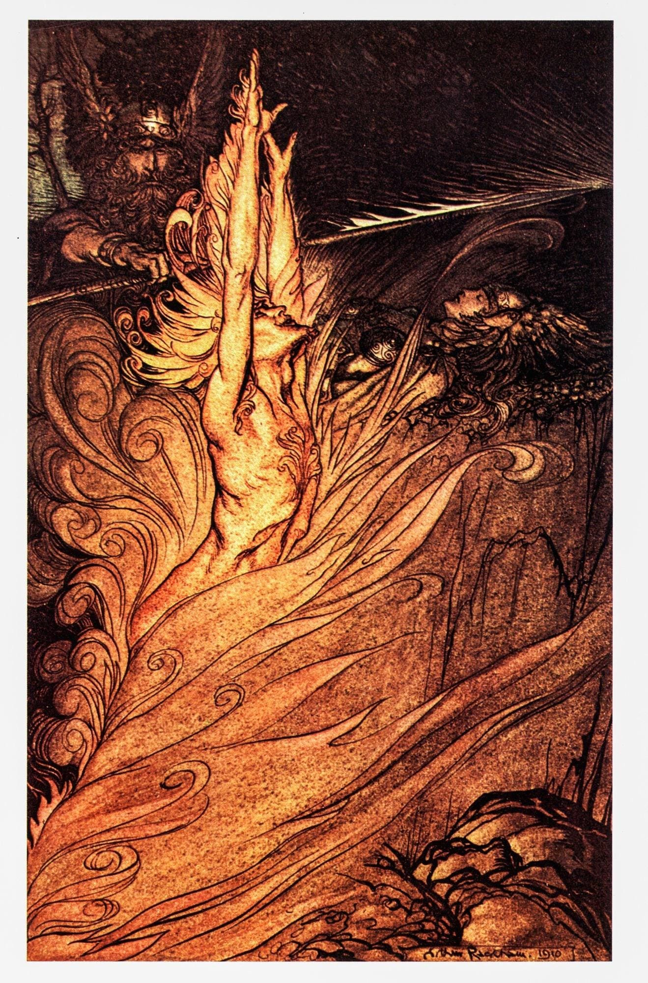 Arthur Rackham Rhinegold Valkyrie Print: 1910 Vintage Book Plate