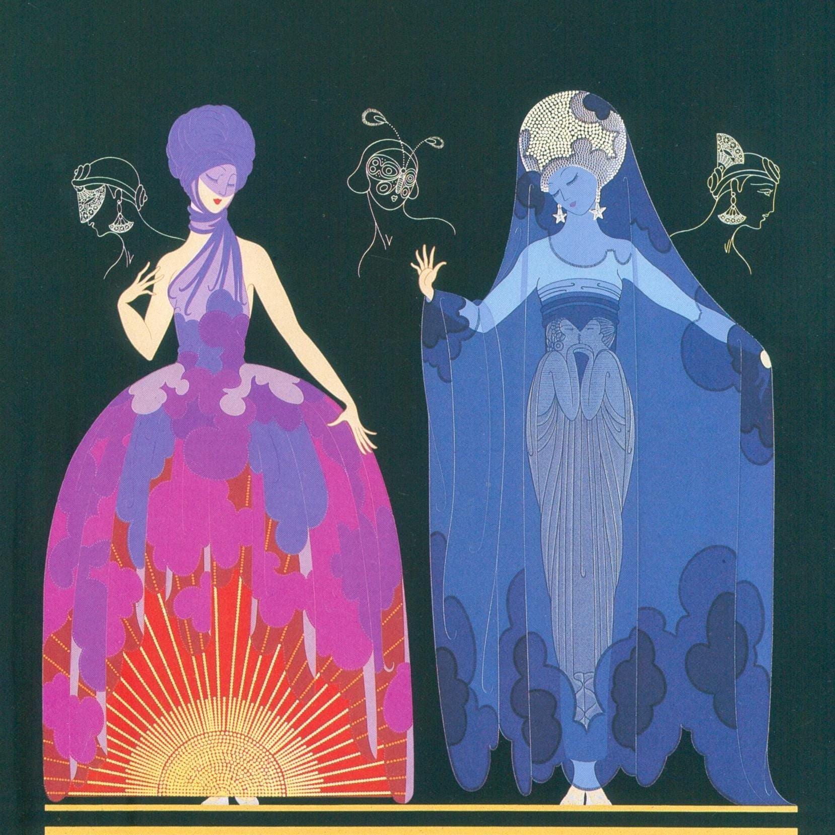 A classic Erte Art Deco print. Authentic vintage book page, not a reproduction, in excellent vintage condition. No tears or writing or folds. Heavy, satin finish paper.