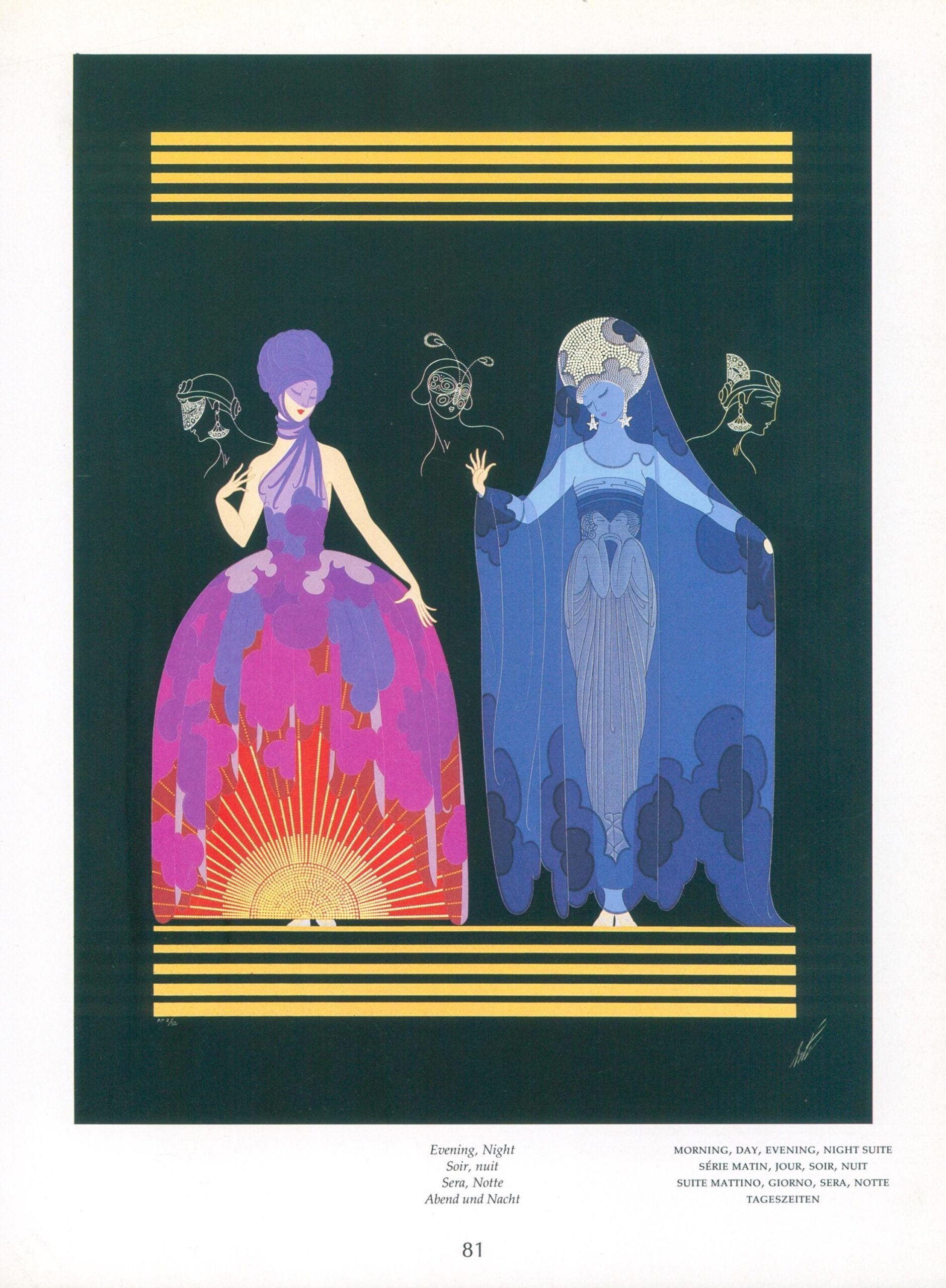 Erte Art Deco Print: “Evening, Night” Vintage Book Page (10×13.5″)