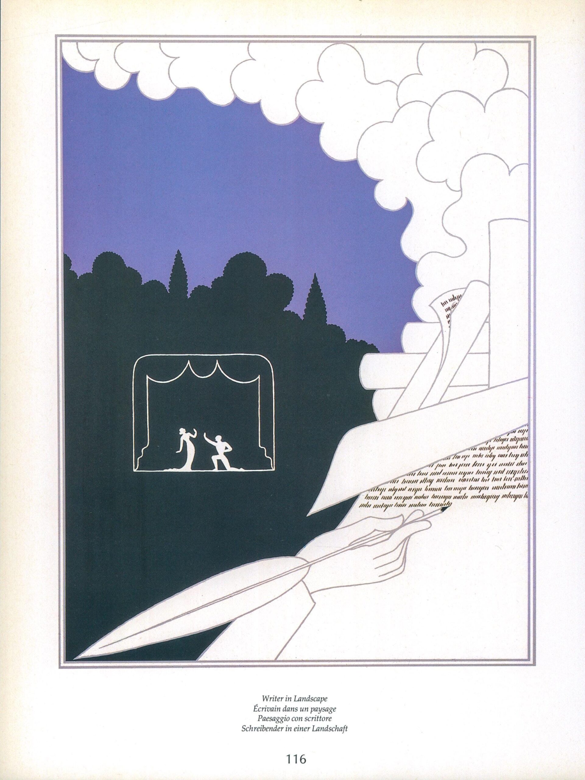 Vintage Erte Fashion Print: “Glamour/Writer in Landscape” Two-sided art book page