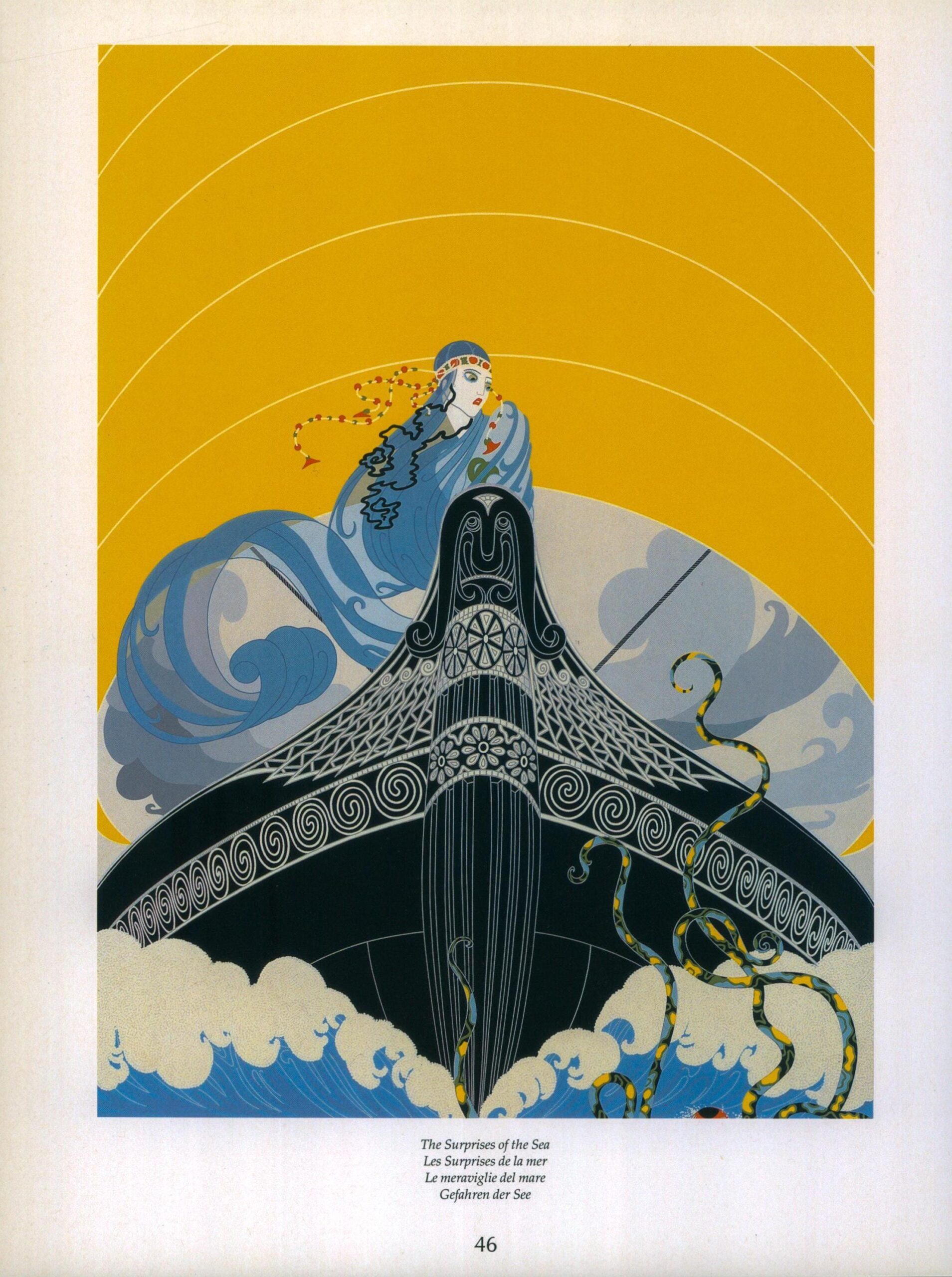 Vintage Erte Art Deco Print: “The Surprises of the Sea” (10×13.5″)