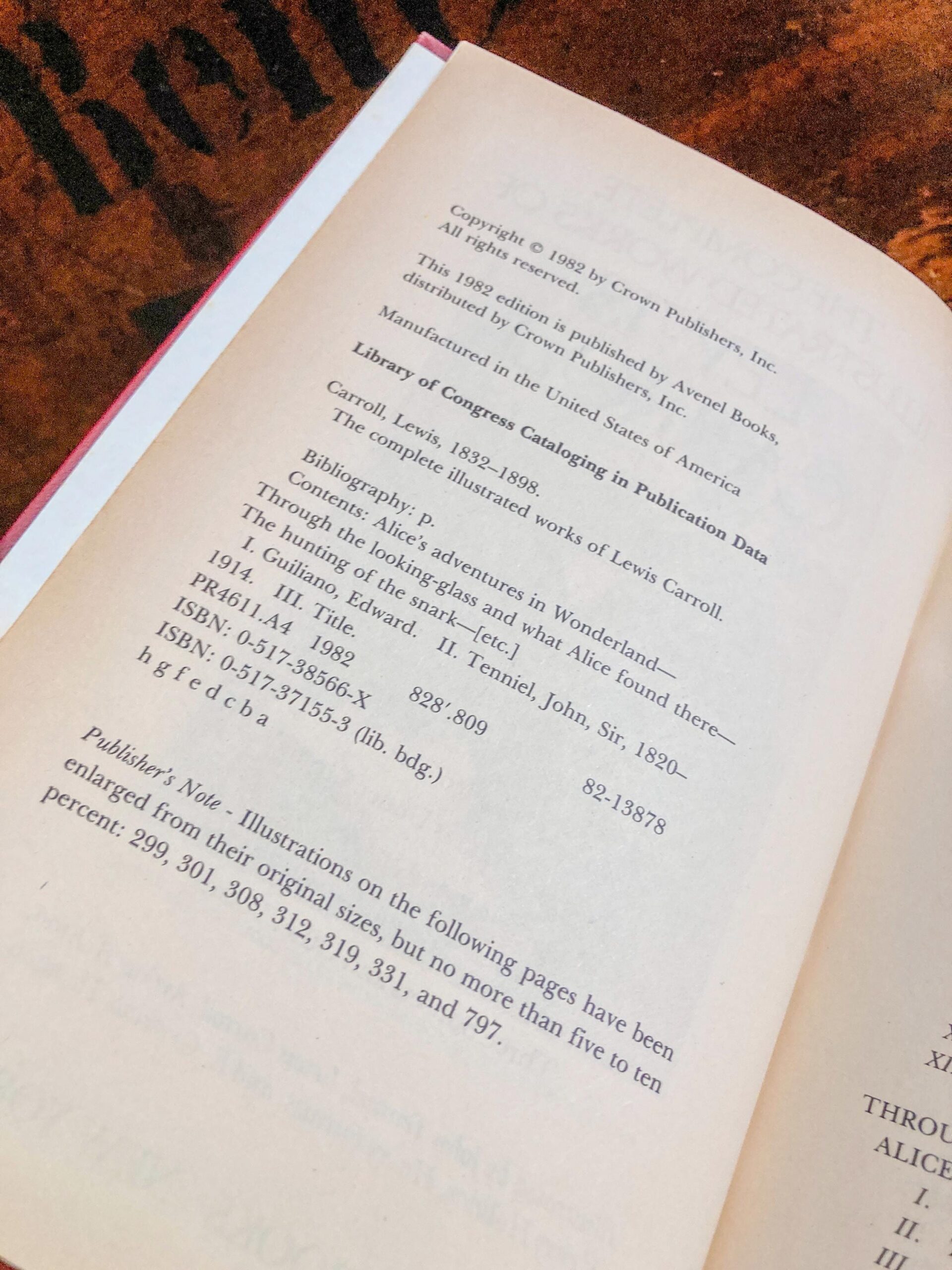 This is a “very good -” vintage hardcover in maroon wrapped boards published in 1982 by Avenel Books, profusely illustrated with original black and white art, 868 pages with bibliography and Carroll chronology.