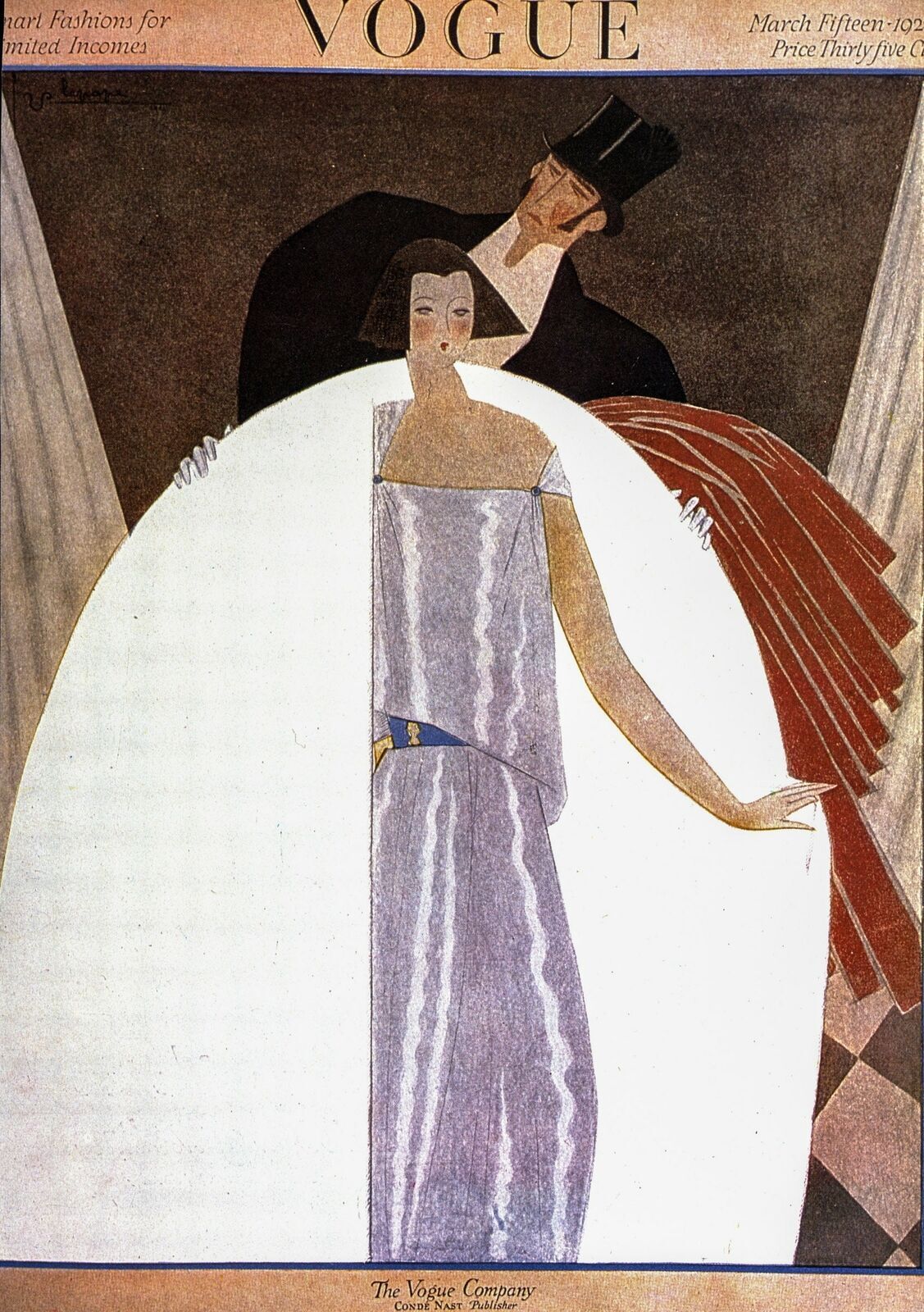 Antique Vogue Magazine cover art 1915/16 Ladies in dramatic outfits Vintage